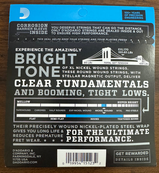 D'Addario XL Nickel Wound Bass Strings 45-100 EXL170