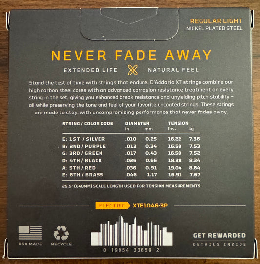 D'Addario XT Nickel Coated Electric Guitar Strings 3-Pack XTE1046-3P