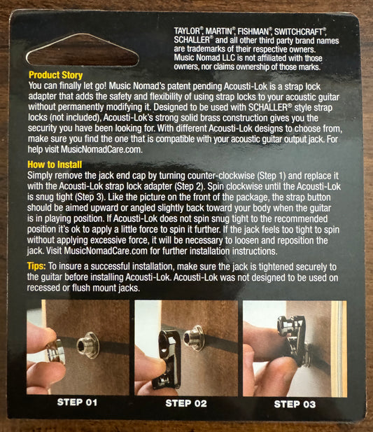 Music Nomad: Acousti-Lok Strap Solution for 3 Screw Output Jacks & End Pins MN273