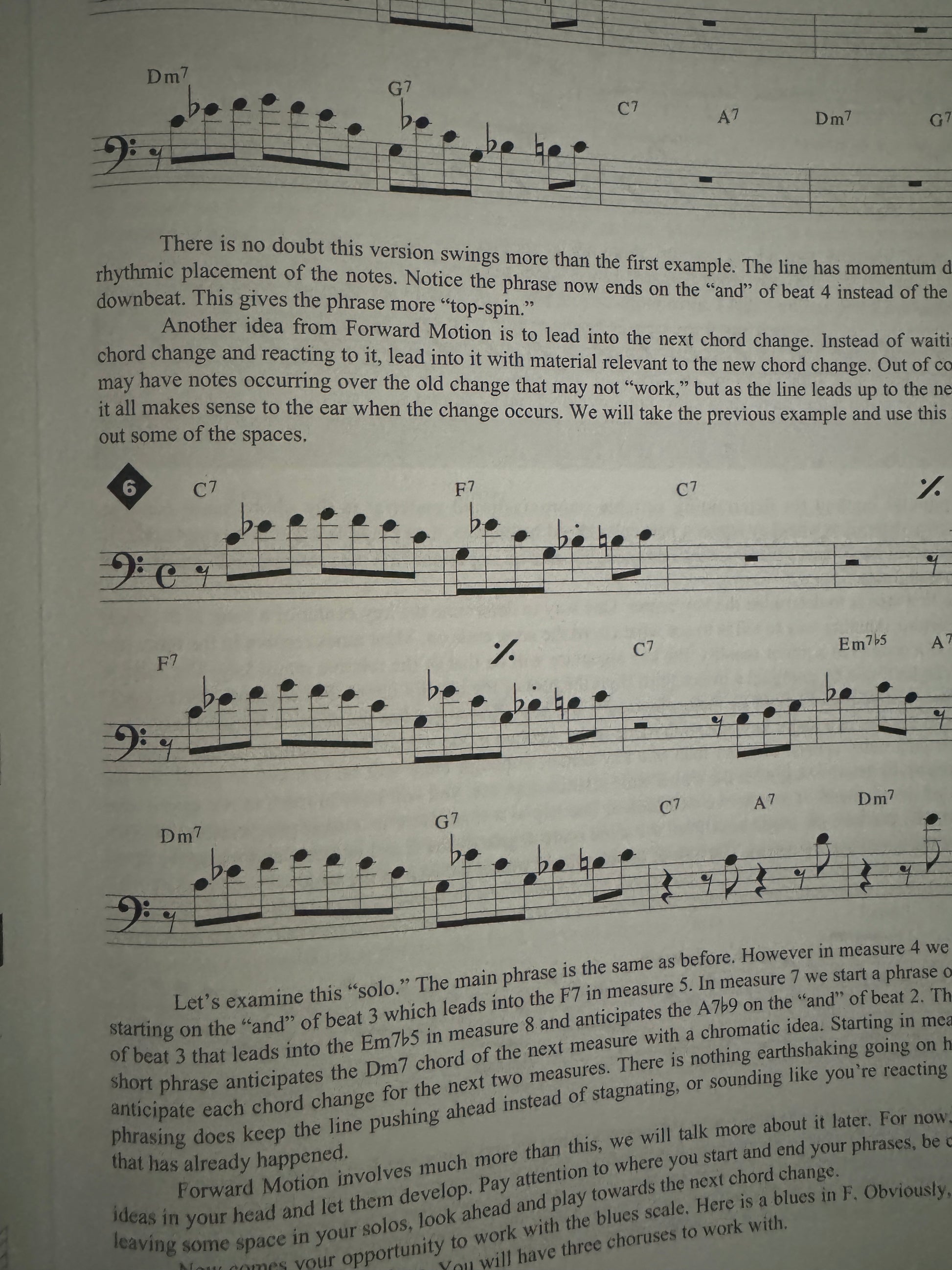 Demonstrates phrasing, chord/scale concepts, melodic development, guide tones, and resolutions.