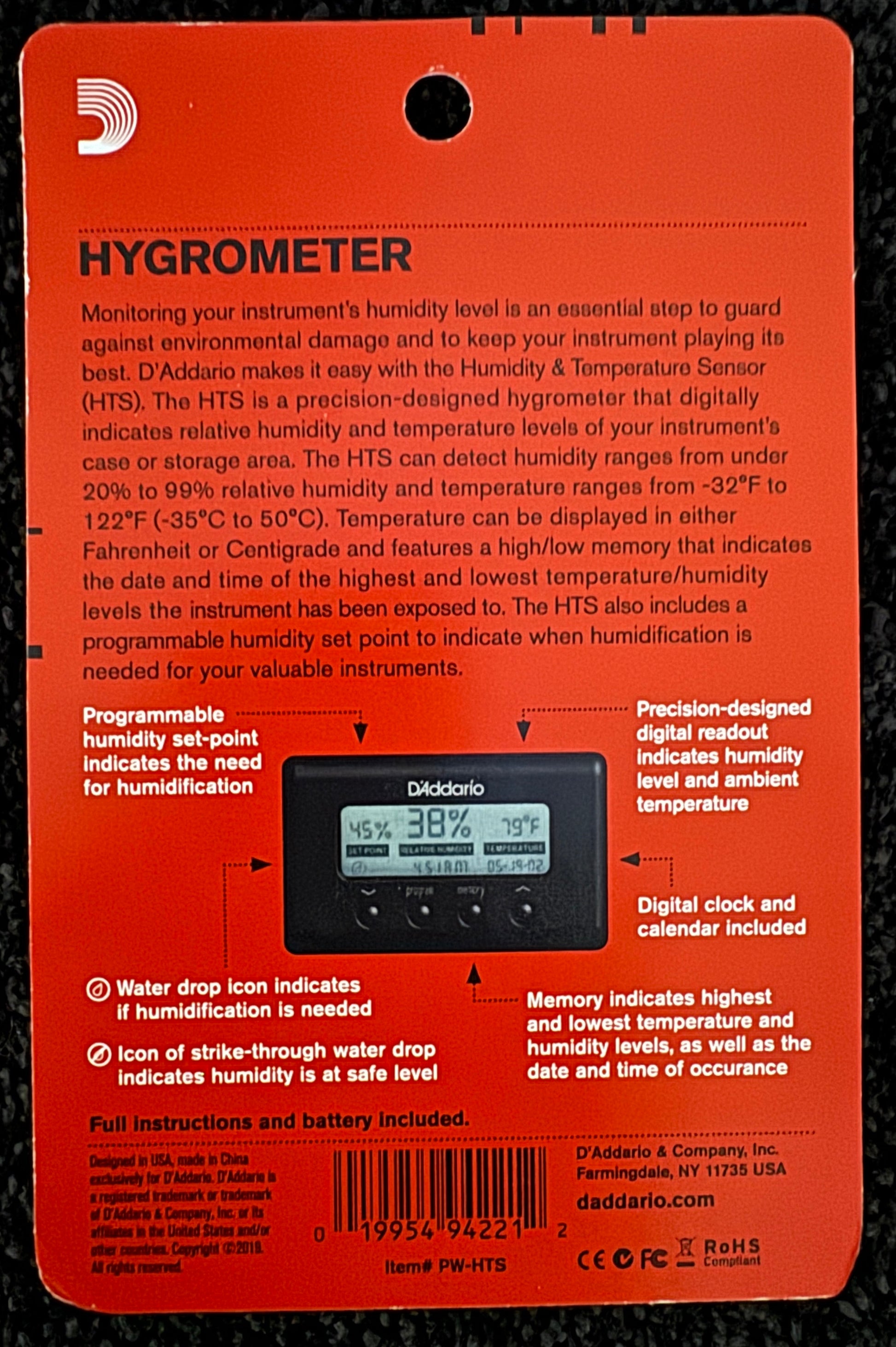 D'Addario Hygrometer Humidity & Temperature Sensor