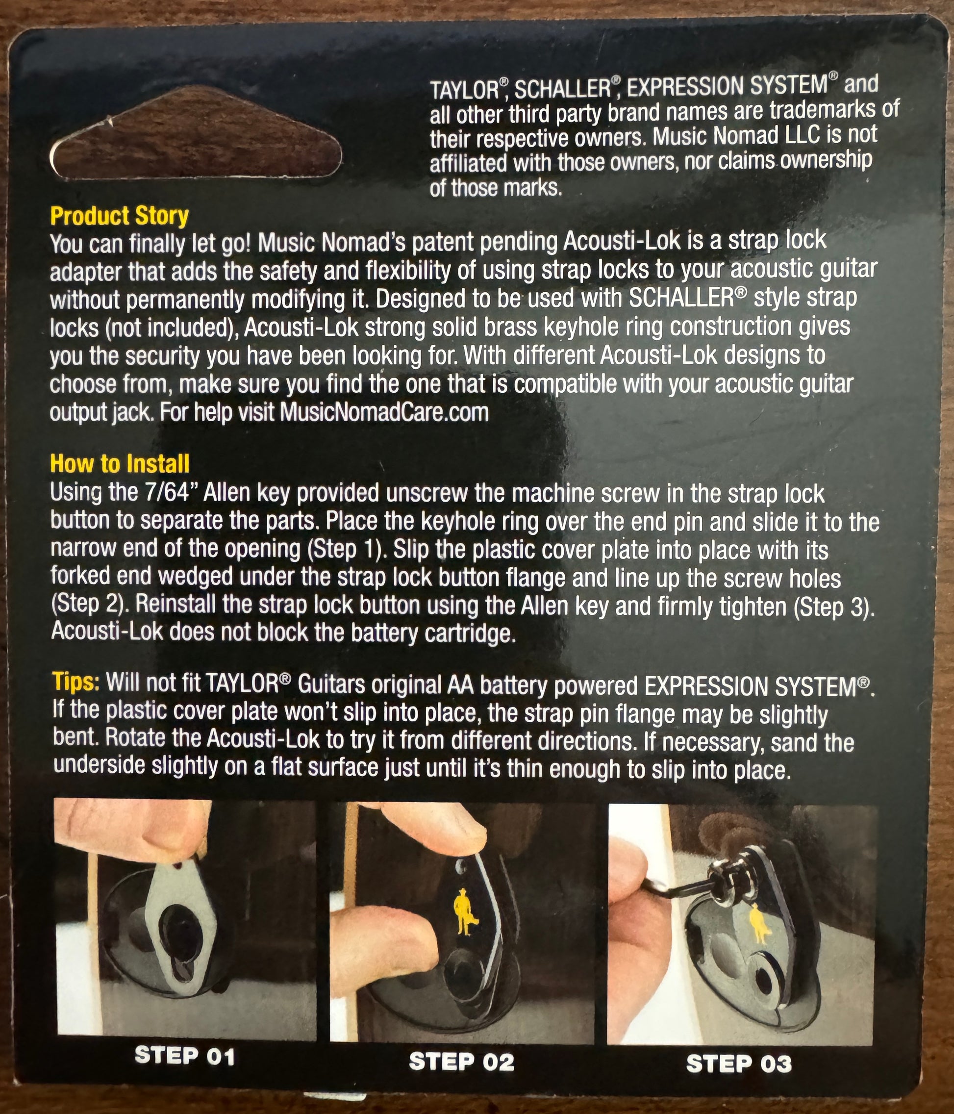 TAYLOR®, EXPRESSION SYSTEM®, SCHALLER® and all other third party brand names are trademarks of their respective owners. Music Nomad LLC is not affiliated with those owners, nor claims ownership of those marks.