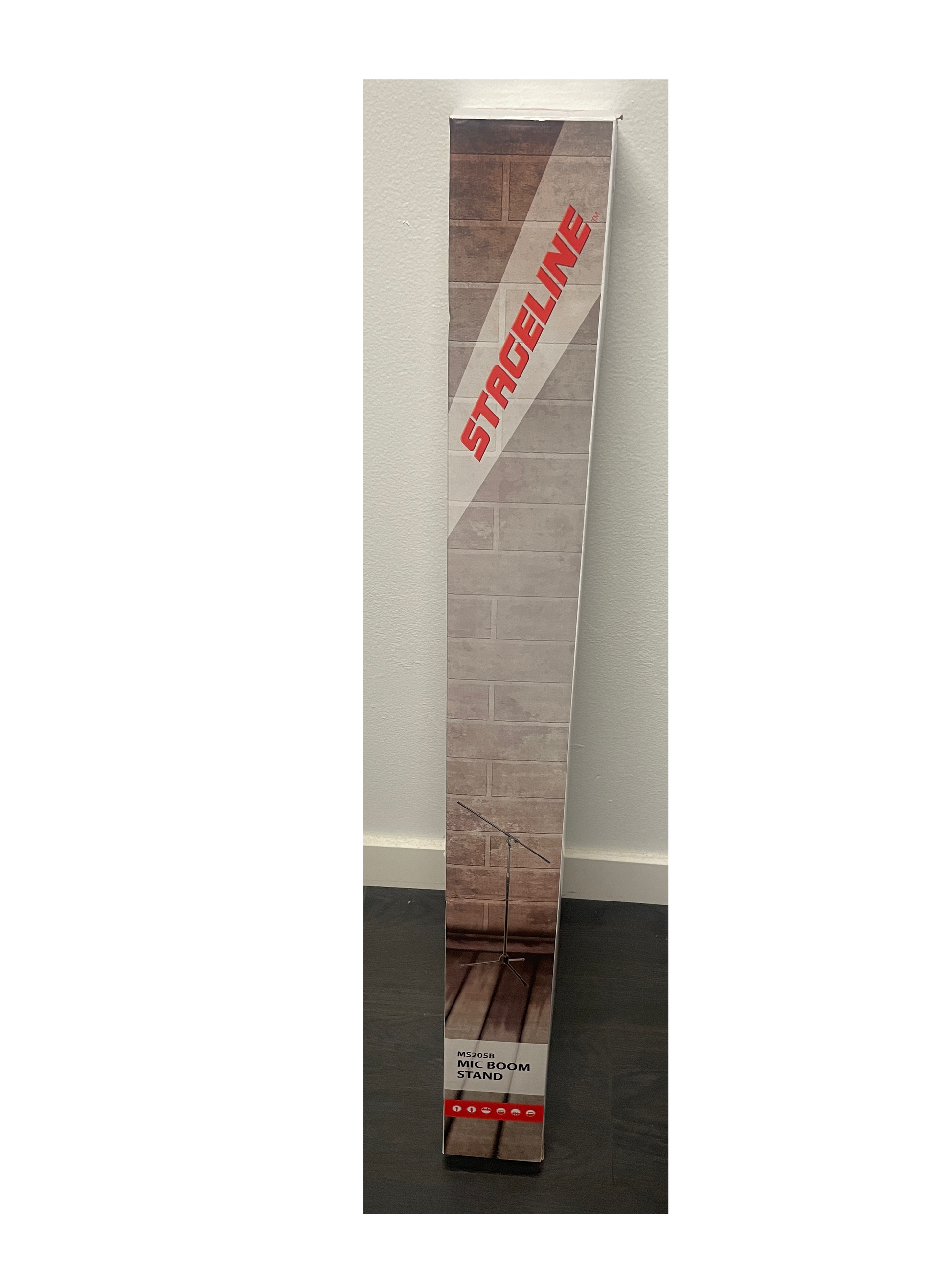 Introducing the Stageline microphone boom stand, a durable and portable mic stand suitable for your audio needs. This black tubular steel tripod MS205B combo stand is height-adjustable and features an anti-skid design for stability. It is a one-tiered tripod base stand suitable for all standard microphones and has a foldable design for easy storage and transport. The boom stand features a sleek and modern design, made with high-quality metal material. It is perfect for use in professional audio setups, musical performances, and recording studios. Get your hands on this Stageline microphone boom stand, and take your audio game to the next level!