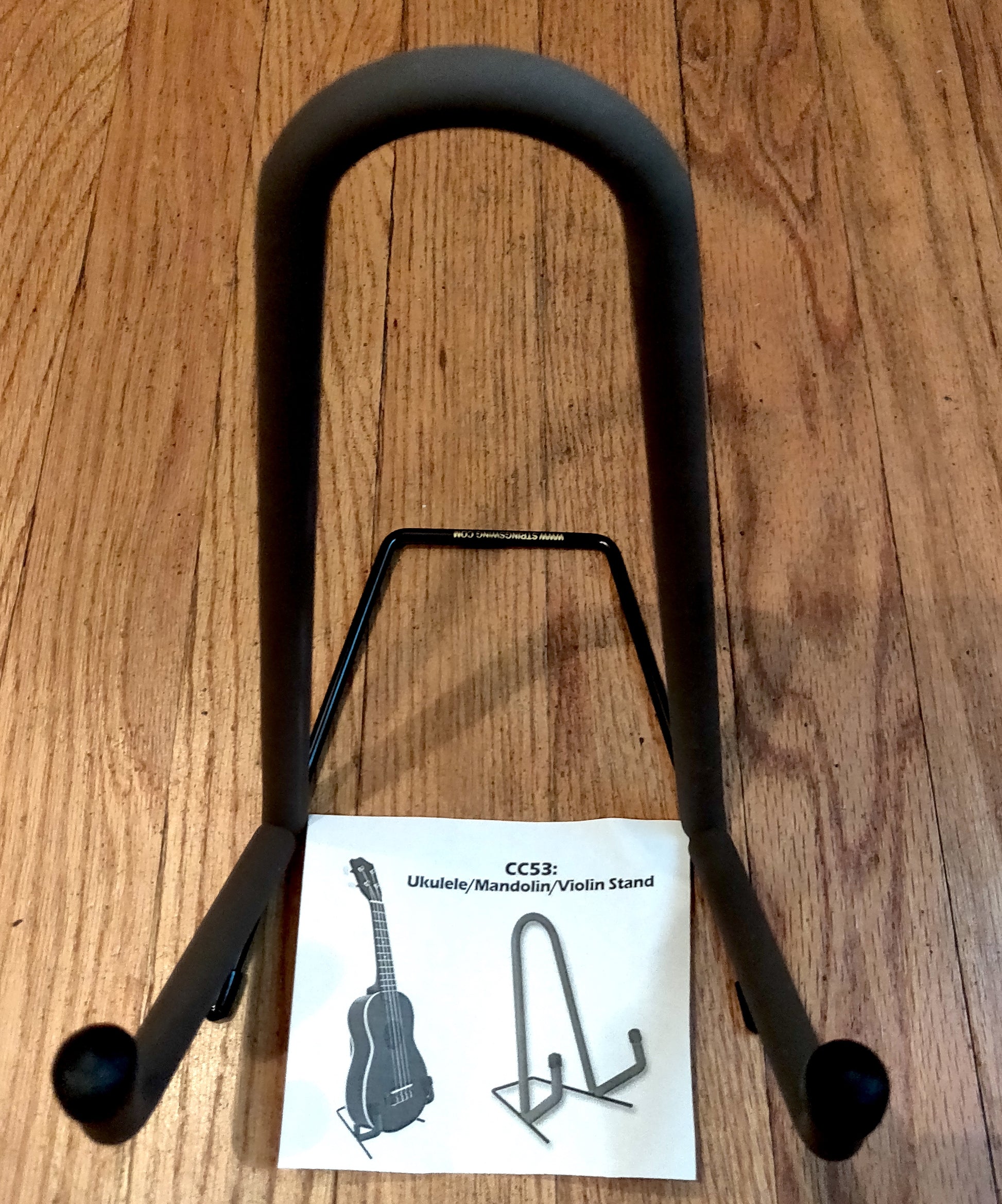 This small, sturdy, easily portable, all-in-one instrument stand is great for ukulele, mandolin, violin, or even cigar box guitars!